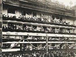 Temporary balconies are erected to allow staff and customers to view Queen Victoria's Diamond Jubilee procession. -